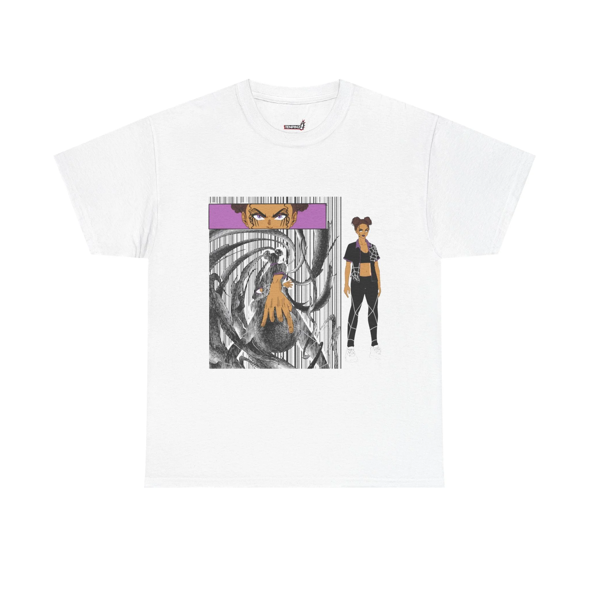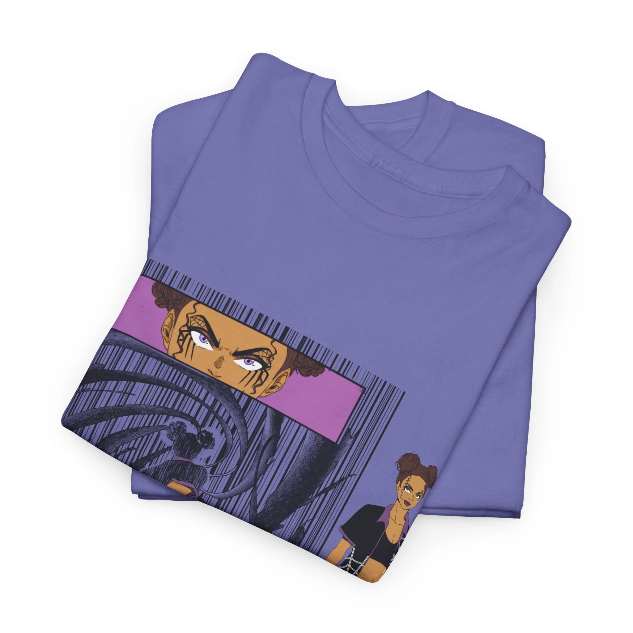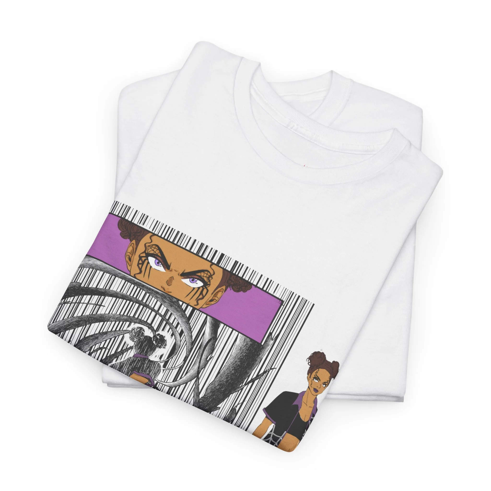 - DTG and DTF printing combine to capture fine detail on front, sleeves, and inner neck